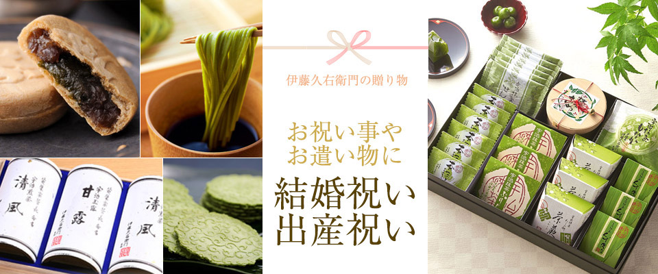 天保3年創業、伊藤久右衛門は高級茶で名高い京都宇治に店舗を構えております。当サイトでは、店頭と同価格で商品をご提供。定番商品や季節限定商品など、スイーツだけでも40~50商品をラインナップ、宇治茶を含めると約100商品を販売中。店頭で選ぶような感覚で、ゆっくりとショッピングをお楽しみください。