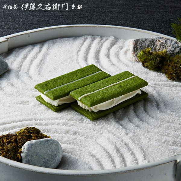 京都で最も予約の取れない店のひとつとして知られる京割烹「祇園さゝ木」と、天保3年より茶の品質を追求し続けるお茶屋「伊藤久右衛門」。京都を拠点とする二つの匠が出会い、互いに培ってきた感性を持ち寄って「宇治抹茶バターサンド たくみがさね」が生まれました。