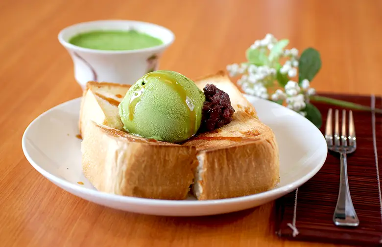 こんがり焼いた厚切りのトースト、甘いバターの匂いに溶け込む抹茶の香り、たっぷりの黒蜜のやさしい甘さ…。