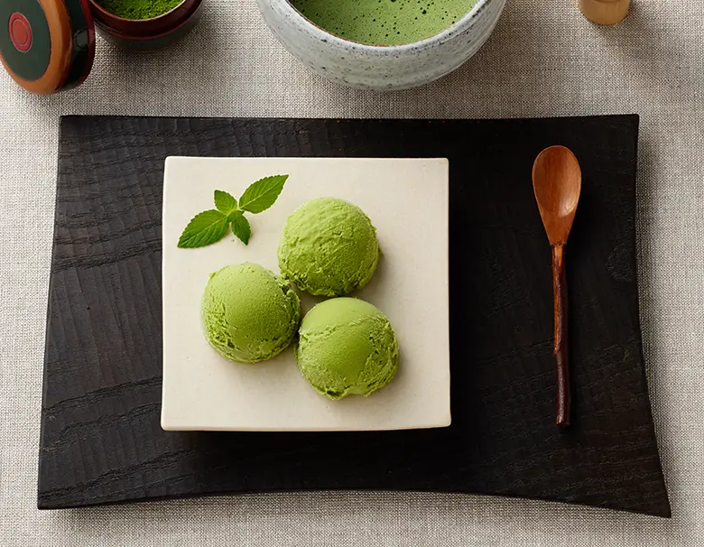 宇治抹茶をたっぷりと使用したアイスクリームは、抹茶本来の奥深い香り、そして、さわやかな後味が魅力です。