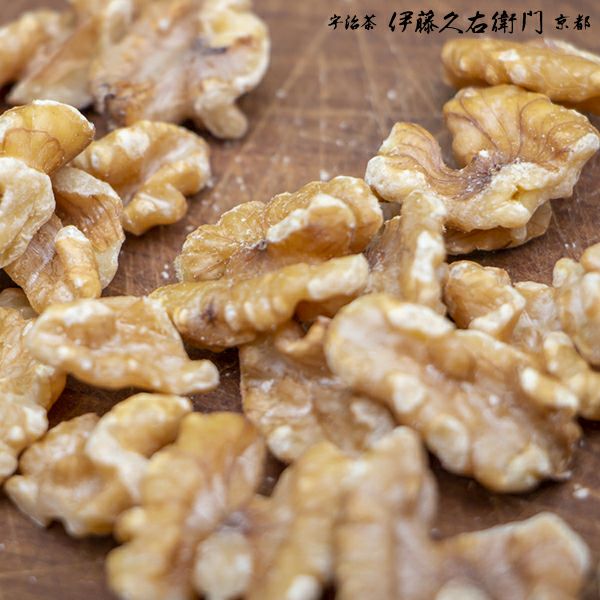 香り高くそしてほろ苦い、歯触り上手のクルミの入ったお餅を抹茶きな粉をまぶして一口サイズの小餅に。