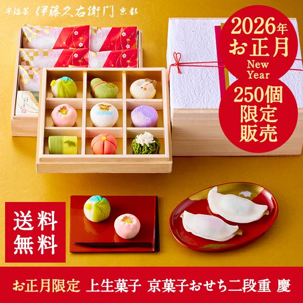 他の画像を見る 冷凍便 送料無料 同梱不可 包装済み ネット限定 TVで紹介 キャンセル不可 【冷凍】宇治茶京菓子おせち二段重 慶【送料無料】【正月限定の上生菓子】【他商品との同梱不可】 § 【250個限定】 スイーツおせち 抹茶餡 ほうじ茶餡 玄米茶餡 煎茶餡 玉露餡 宇治煎茶 和菓子 季節限定 数量限定 期間限定 京都 詰め合わせ セット 5種のお茶の餡 御節 よろこび 090903 価格 ¥ 15,000 税込 販売期間 2025/10/07 6:00 〜 2025/12/25 17:00 商品詳細を見る お気に入りに登録する