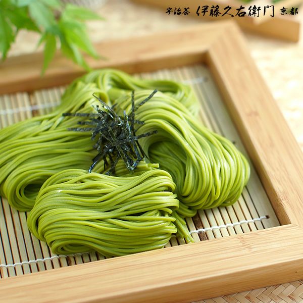 伊藤久右衛門の『宇治抹茶そば』は、選りすぐりの宇治抹茶とそば粉と小麦粉で丁寧に作り上げた逸品です。
