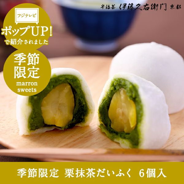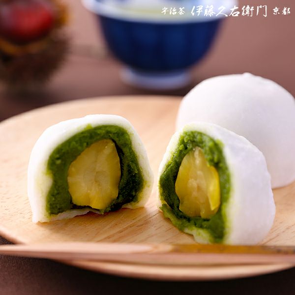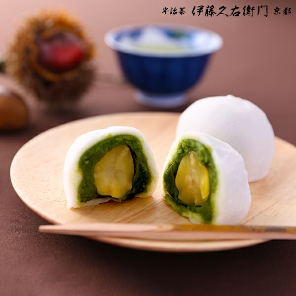 伊藤久右衛門、秋のいちおし和菓子「栗抹茶だいふく」。栗をまるごとひとつ使用した、この季節ならではの逸品です。