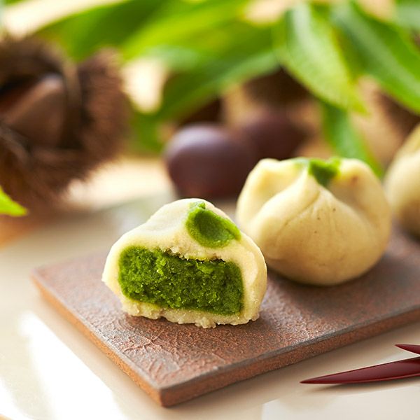 中を割ると、たっぷり包まれた抹茶餡が顔を出し、思わず顔がほころんでしまいます。栗の甘さと抹茶の旨味とが口いっぱいに広がり、心ゆくまで秋を堪能できる旬のお菓子です。