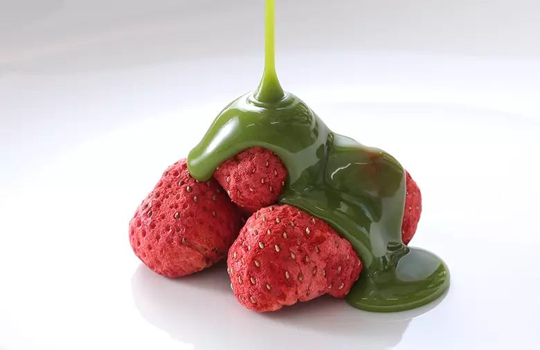 濃厚抹茶の風味を壊さないように、フリーズドライ苺はほどよい酸味のものを使用。ホワイトチョコレートとの相性が良いものを選りすぐりました。