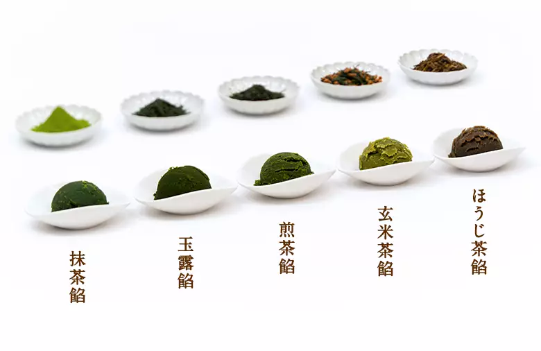 抹茶やほうじ茶だけでなく、玉露や煎茶や玄米茶を練り込んだ、お茶屋ならではの餡もご用意。