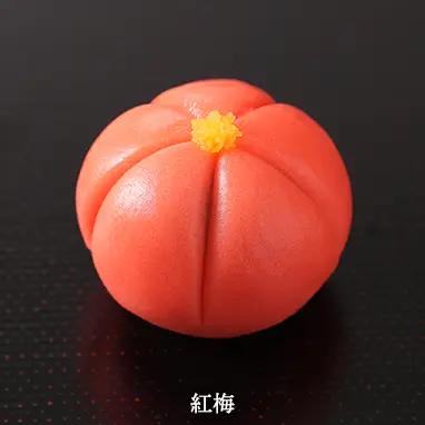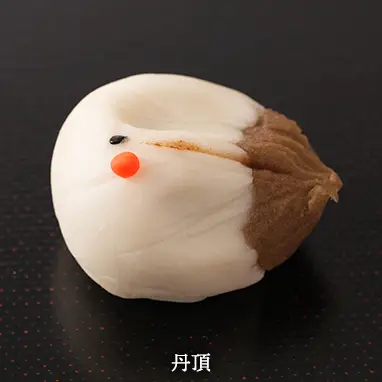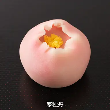 ふっくらとした白い求肥餅に桃色の求肥餅を重ね、抹茶を加えた白味噌餡と甘く煮たごぼうを包みました。愛らしい形に紅色が透け見える、晴れやかなお正月の伝統菓子です。素材それぞれの繊細な風味をお楽しみください。