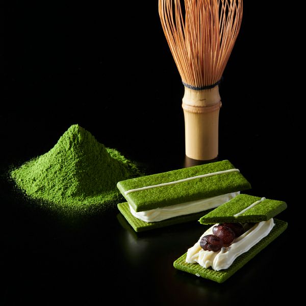 さくさくとしたサブレでコクのあるクリームを挟みアクセントに大納言小豆を加えました。軽やかな食感の後に、伊藤久右衛門さんの抹茶の苦味や風味の良さが心地よく口に残ります。品質の良いバターを使った、上質さを感じていただけるクリームとサブレの相性の良さをお楽しみください。
