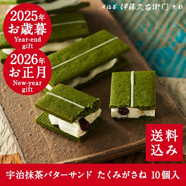 京都で最も予約の取れない店のひとつとして知られる京割烹「祇園さゝ木」と、天保3年より茶の品質を追求し続けるお茶屋「伊藤久右衛門」。京都を拠点とする二つの匠が出会い、互いに培ってきた感性を持ち寄って「宇治抹茶バターサンド たくみがさね」が生まれました。
