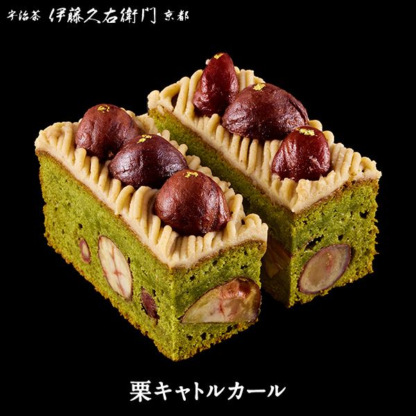 〔栗キャトルカール〕渋皮栗甘露煮(国内製造)、マロンクリーム、マロンペースト、バター、全卵、砂糖、アーモンドパウダー、小麦粉、クリーム、洋酒、抹茶/膨張剤、香料、着色料(金箔)、(一部に乳成分・卵・アーモンド・小麦を含む)