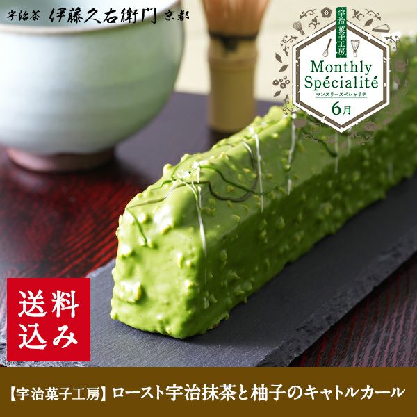 宇治菓子工房がお届けする特別な月替りスイーツ「Monthly Specialite マンスリースペシャリテ」。6月は「ロースト宇治抹茶と柚子のキャトルカール」を数量限定でお届けします。