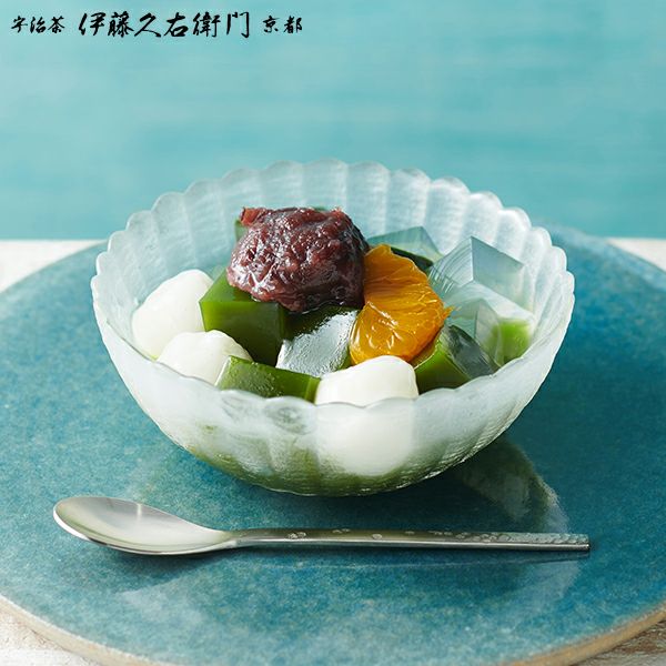[TVで話題]最大2時間半待ちの抹茶あんみつをお届け。芸能人のおもたせランキングに入選し大ブレイク。濃厚抹茶ゼリー、歯ごたえの良い寒天に丹波大納言小豆。京都のお茶屋のこだわりがつまっています。