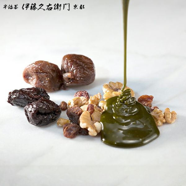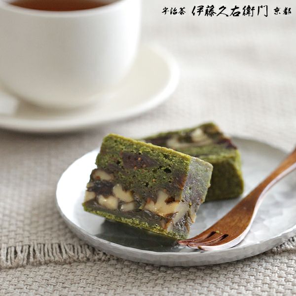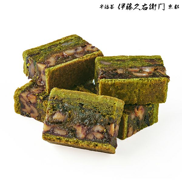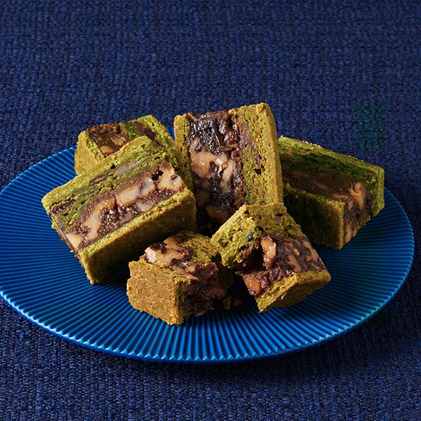 上品なほろ苦さの宇治抹茶をはじめ、香ばしいくるみ、ミルキーなキャラメル、複数のドライフルーツ等の多種多様な素材を、それぞれサブレ生地、チョコパウンド生地、キャラメル生地に贅沢に使用。
