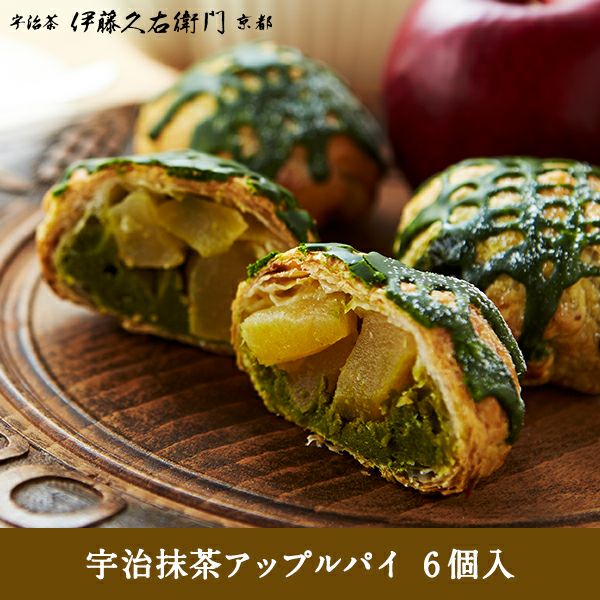 口の中に広がるりんごの甘酸っぱさと抹茶のほろ苦さの調和した、コロンと可愛い手のひらサイズのアップルパイです。6個入。