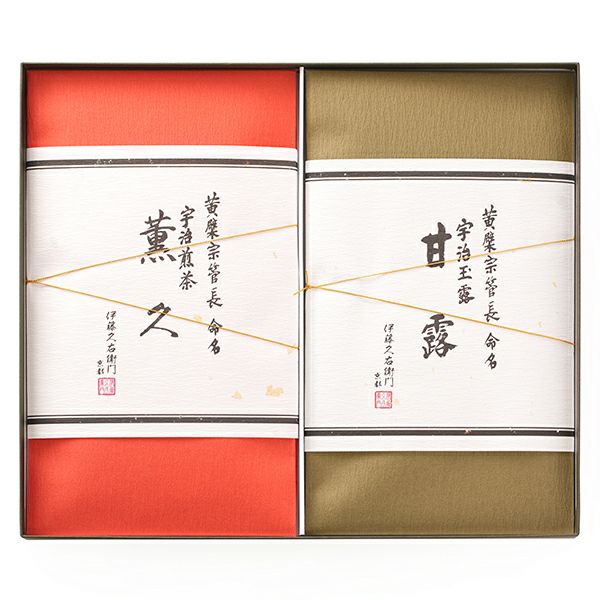 高級煎茶「薫久(旧 : 清風)」。高級玉露独自の覆い香と呼ばれる芳醇な香り、甘味が楽しめる宇治玉露「甘露」。ご進物用に最適です。