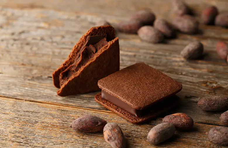 コーティングをビターチョコレートにすることで、ほろ苦くも後味が引き締まるように調整した、絶妙なバランスもお楽しみください。