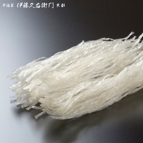 通常、水ようかんには手軽な粉寒天を使用しますが、宇治抹茶生水ようかんには糸寒天を使用しています。