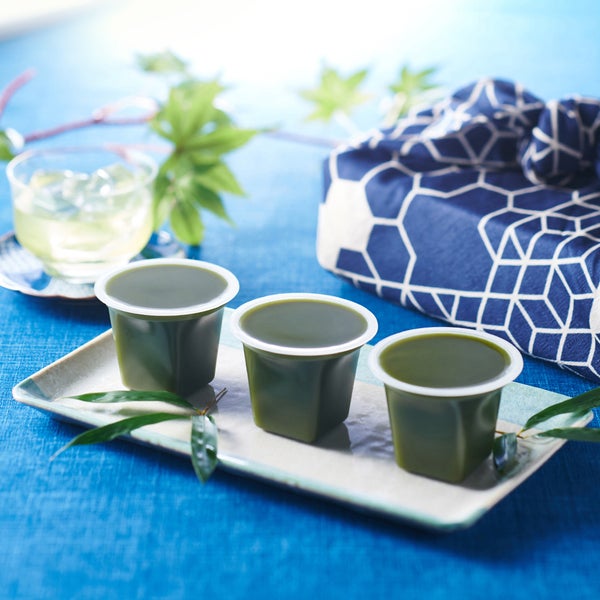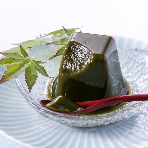白あんに挽きたての宇治抹茶を丹念に練りこむことで、なめらかな食感はそのままに、ほど良い甘さと豊かな抹茶の風味がたのしめる水ようかんができました。