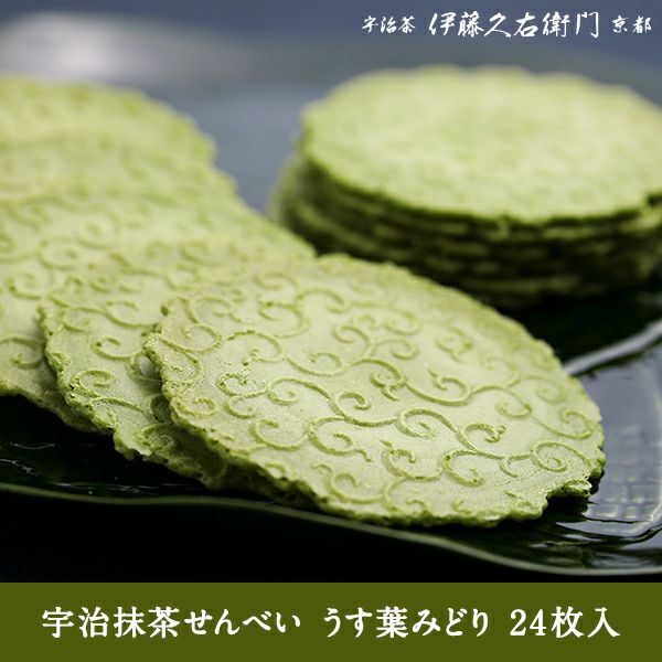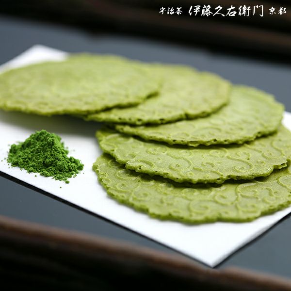 宇治本店・JR宇治駅前店・祇園四条店併設の茶房で大人気の「抹茶パフェ」のトッピングにも使用している、伊藤久右衛門自慢のうす焼きせんべいです。