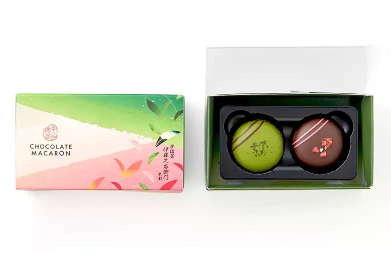 抹茶のマカロン生地に濃厚な抹茶ガナッシュをサンド。