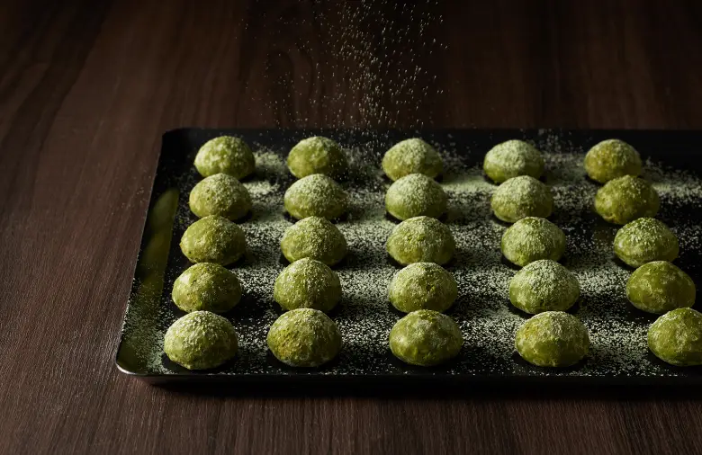 口に入れると崩れてしまうような繊細な食感が特長の、ひとくちサイズのクッキーです。ほろほろとほどけると同時に、濃厚な抹茶の香りとほろ苦さが広がります。2種類の宇治抹茶をブレンド。隠し味にはフランス産の海塩・ゲランドの塩を加えました。