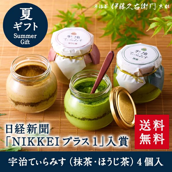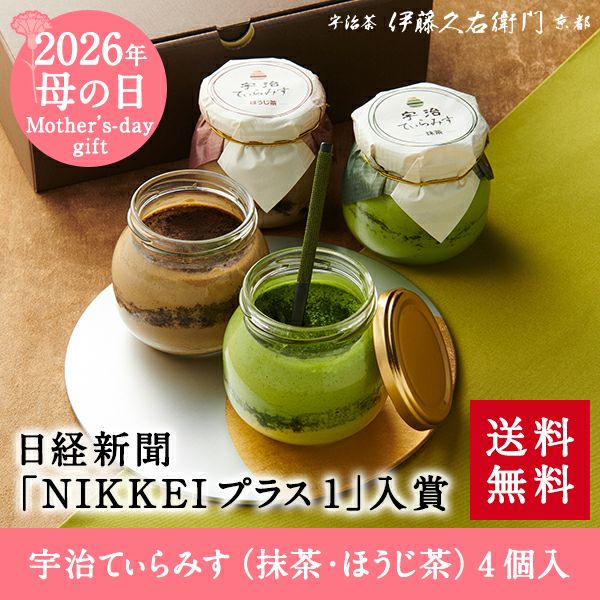 日経新聞「NIKKEIプラス1」入賞の「宇治てぃらみす」、華やかな茶の香りを和素材が引き立てるティラミスです。北海道産マスカルポーネと宇治茶2種のハーモニーをお楽しみください。