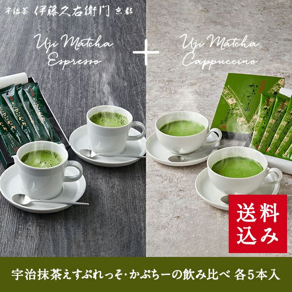 2つの味わいの違いを楽しめる飲み比べセットをご用意しました。期間限定抹茶えすぷれっそ(5本入)と人気の抹茶かぷちーの(5本入)を飲み比べ!