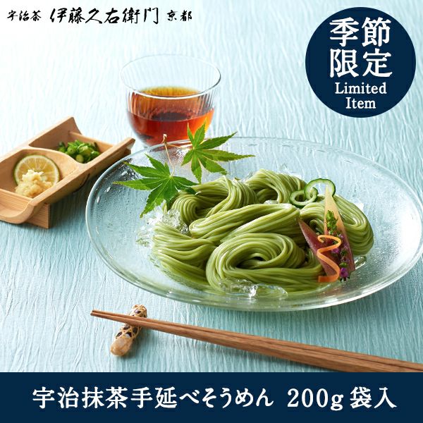 創業嘉永3年、代々手延べの技を受け継ぐ三輪そうめん「池利」と共同開発した、宇治のお茶屋ならではの手延べそうめんです。