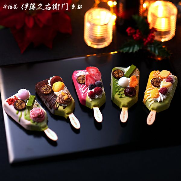 滑らかな抹茶アイスをベースに、季節の彩りをそのままトッピングしたような5種のアイスバーをお届けします。