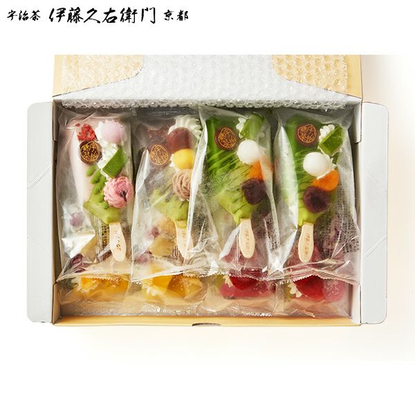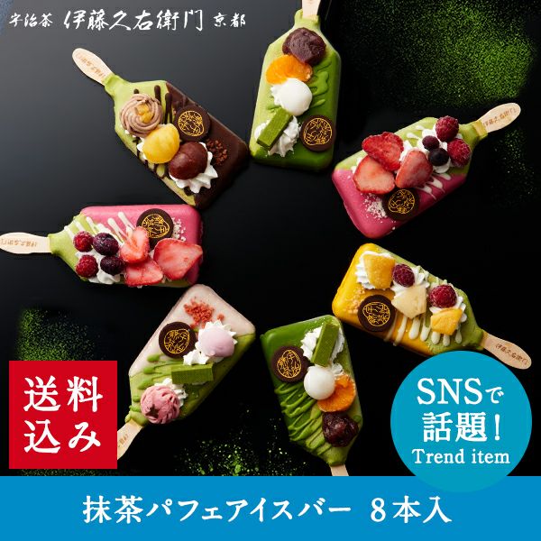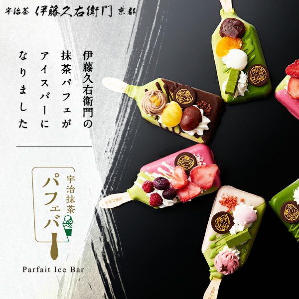 京都でしかお召し上がりいただけない「伊藤久右衛門の抹茶パフェ」が、アイスバーになりました。定番の抹茶パフェだけでなく、いちご・さくら・トロピカル・モンブランの季節パフェも。ご家庭で茶房の味を。たっぷり楽しんでいただける8本入。
