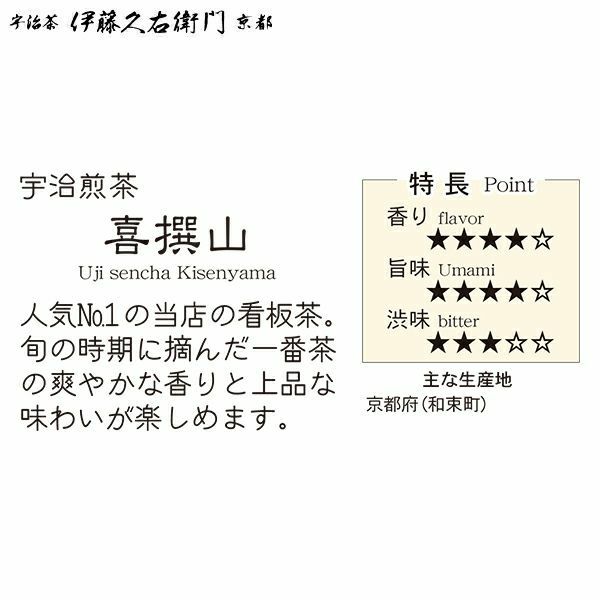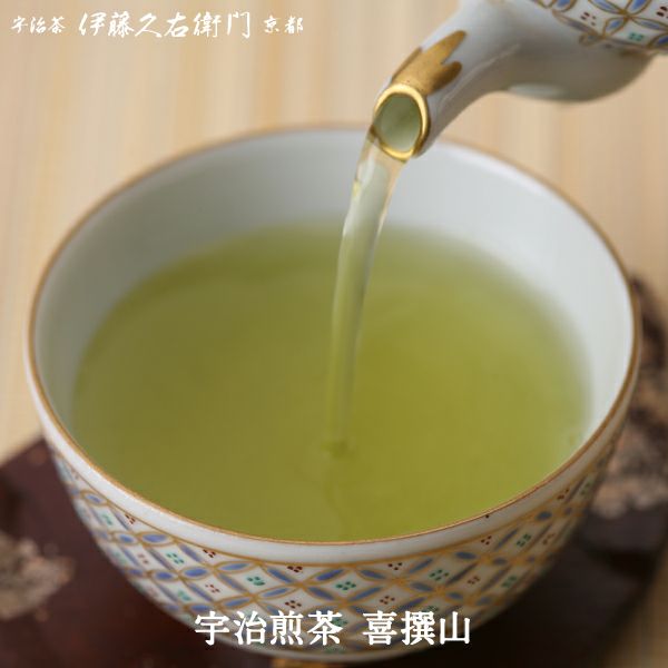 当店でも人気の宇治煎茶「喜撰山」一煎分をお付けしてお届け。