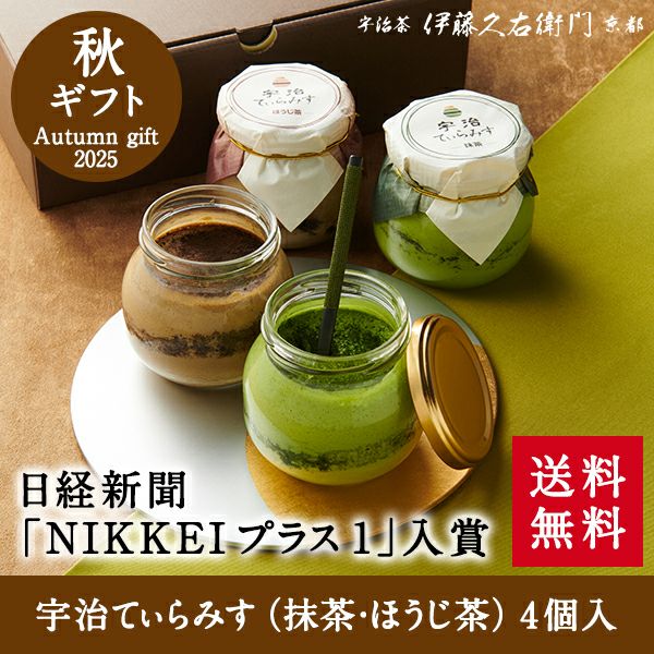 日経新聞「NIKKEIプラス1」入賞の「宇治てぃらみす」、華やかな茶の香りを和素材が引き立てるティラミスです。北海道産マスカルポーネと宇治茶2種のハーモニーをお楽しみください。
