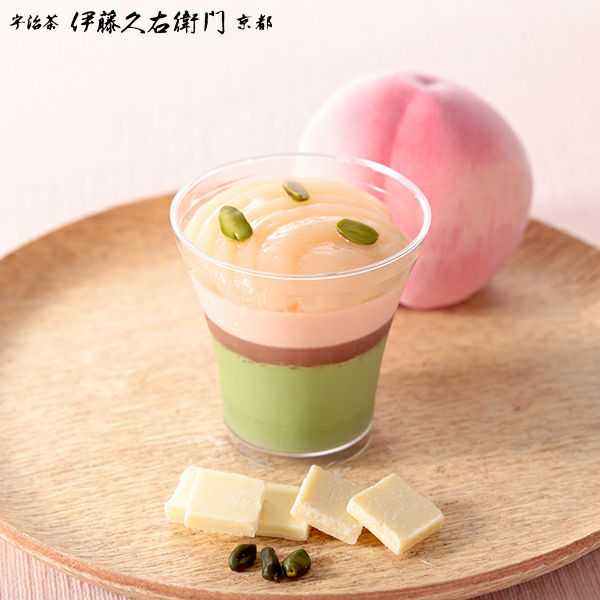 かわいらしい桃色と鮮やかな緑色の対比で見た目も美しい、とっておきの夏の一品。口いっぱいに広がる桃と抹茶の魅力を存分にご堪能ください。