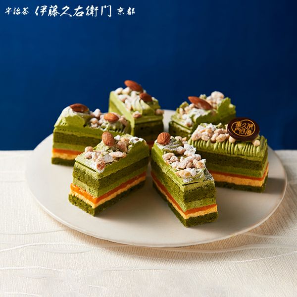 アーモンドと宇治抹茶を主役に、バタークリームとビスキュイ生地を重ねた贅沢なバターケーキができました。口の中でスッと溶ける濃厚バタークリームから抹茶のほろ苦さとアーモンドのコクと甘味が口いっぱいに広がります。アクセントにはスーパーフルーツ「サジー」を加えすっきりした酸味で全体をシャープにまとめました。選び抜いた素材が作り上げるとっておきのハーモニーをご堪能ください。