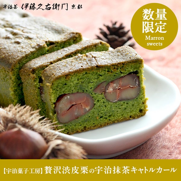 どこを切っても渋皮栗が顔を出す、贅沢な贅沢な宇治抹茶キャトルカールです。