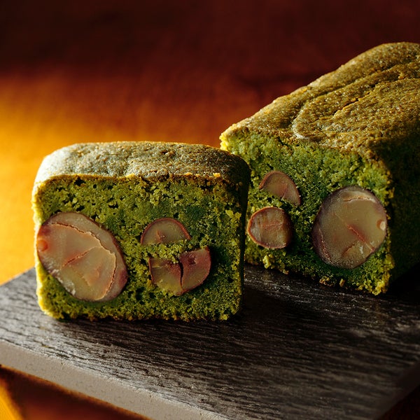 どこを切っても栗が見える、しっとり濃厚抹茶パウンドケーキ。栗の旨味をパウンドケーキ型にぎゅっと封じ込めて、ていねいに焼き上げました。