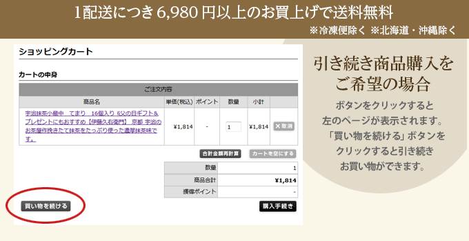 1配送につき、お買い上げ金額の合計が税込6,990円以上で送料無料になります。