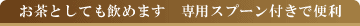 専用のスプーンが付いているので計量にも便利。大盛り2杯程度を湯のみに溶かしてお召し上がりください。