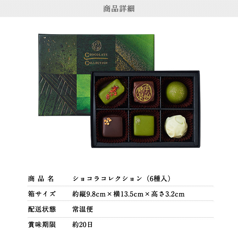ショコラコレクション2020 6種入【早割】【2020年新作】≪2020バレンタインギフト≫ § 【賞味期限約20日間】 6個入 抹茶 ほうじ茶 チョコレート 高級 本命 日本を楽しむ大人のバレンタインチョコレート 090470