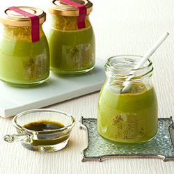 素材が持つ味を存分に楽しんだ後、お好みで「お濃茶蜜」をかけてお召し上がりください。プリンとお濃茶蜜でより強く抹茶の風味を感じられることでしょう。