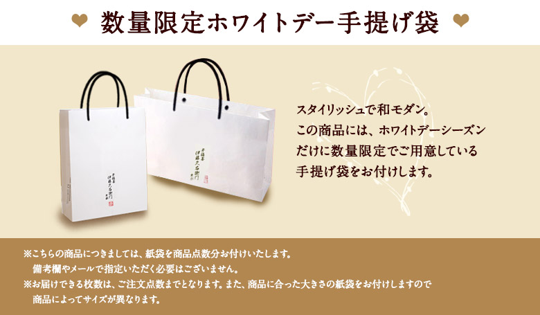 商品に合わせて紙袋を無料でお付けいたします。ご注文時に備考欄からご指定ください。