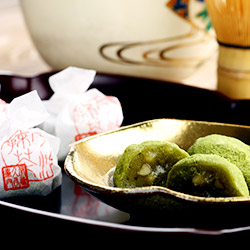 もちもちのお餅に砕いたクルミを入れて別の食感をプラスしアクセントに。 クルミのコクのある味わいと食感が抹茶の旨味をより引き立てます。