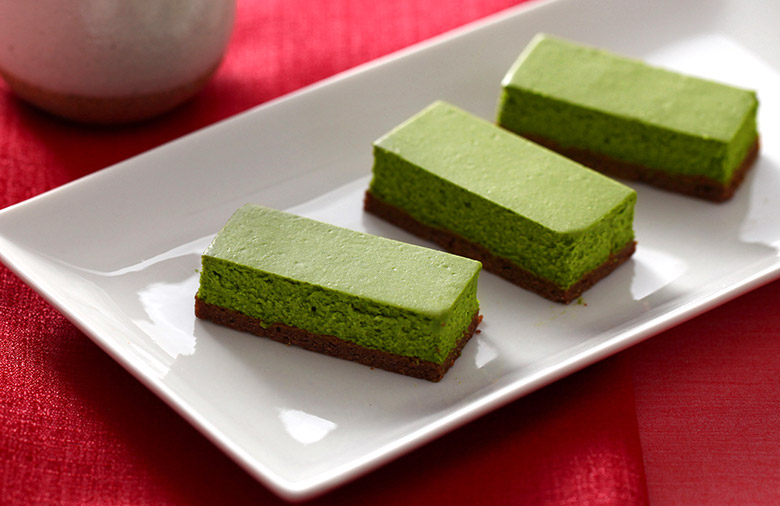 鮮やかな緑色としっかりとしたチーズケーキの味と鼻に抜ける豊かな宇治抹茶の風味。