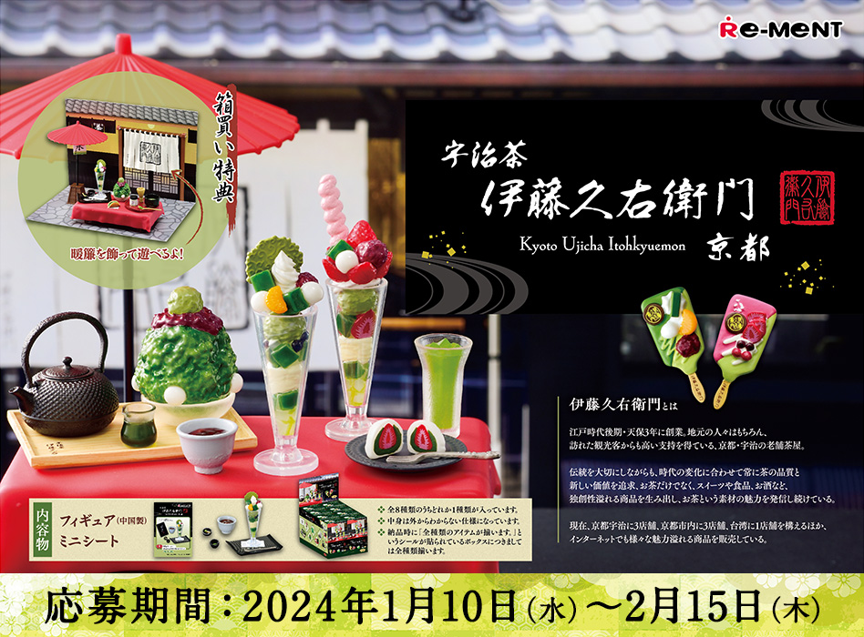 ご応募いただいた方の中から抽選で「リーメント × 伊藤久右衛門 ミニチュアフィギュア全8種」をプレゼントいたします。 ※プレゼント応募いただいた方は伊藤久右衛門のメールマガジンに登録されます。あらかじめご了承ください。