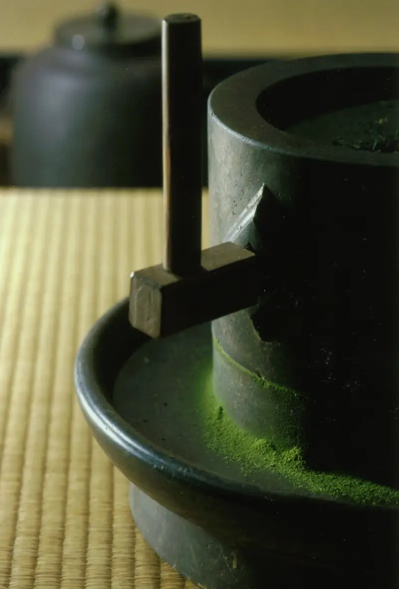 宇治菓子工房で使用する抹茶はすべて昔ながらの石臼挽き。