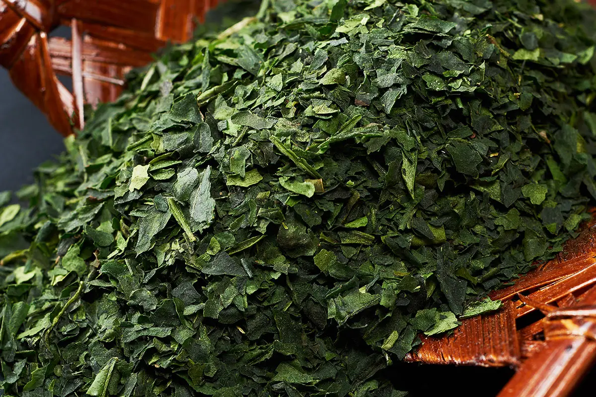宇治茶最大の収穫量を誇る和束町産の品種「さみどり」。5月下旬~6月半ばの旬の時期に摘み取った一番茶です。