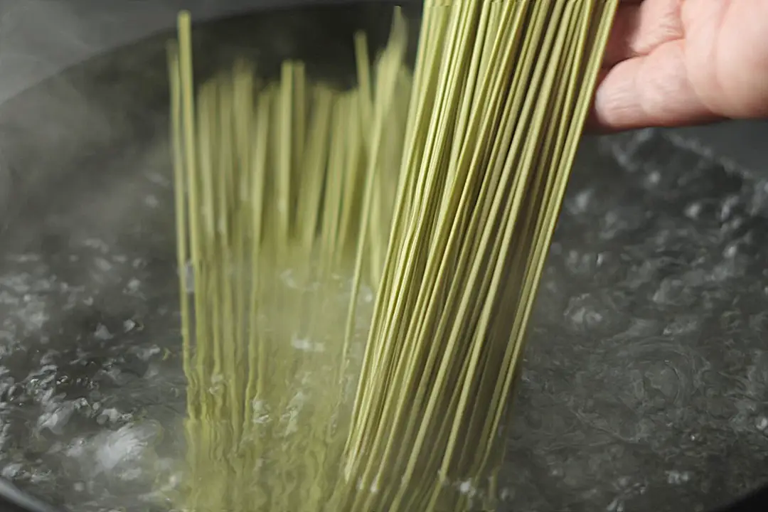 宇治抹茶そば2人前×3袋のセットです。宇治川の深い川霧と伝承された人の手業が生み出した宇治抹茶をふんだんに使用し、冴えた緑と豊かな風味をたっぷりとそば粉に封じ込めて仕上げました。