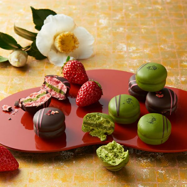 口の中で滑らかにとろける抹茶カスタードあんを、ほんのりピンクに染まったオリジナル皮で優しく包み込みました。『宇治抹茶×スイーツ』の発想に『和菓子×洋菓子』のひらめきを加えた、新しい味わいです。