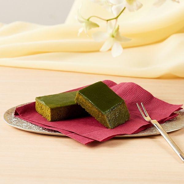 お濃茶用の抹茶を2倍使用し、高貴な抹茶が香り立つお濃茶チーズケーキをお作りしました。幸せな余韻の秘密はレアとベイクド、二層のチーズケーキ。ふんわりやわらか、まるで抹茶の泡を飲んでいるかのように、口の中ですっととろけます。